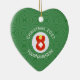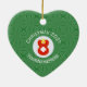 Christmas decor heart shaped ceramic ornament features a blond angel dressed in the flag of Switzerland. The Christmas Swiss Flag Angel is found inside a white circle of squiggly squares, surrounded by a background of green squiggly squares. Add your own text or personalize with the year and a name.
