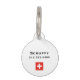 I looked through a lot of pet stores and web sites then I saw Zazzle and a tag with guitars in the background so we added his name and photo o nether front and our phone numbers on the back. It was beautiful and unique just perfect