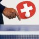 Swiss flag ping pong paddle for table tennis. Flag of Switzerland. Sports game gift idea for men women and kids. Country symbol.