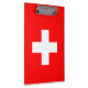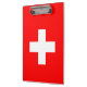 This design features the flag of Switzerland (officially the Swiss Confederation), which is a landlocked country in the middle of Europe. It is a federal republic, divided into 26 cantons; its capital city is Bern, while its largest city is Zurich. The country borders Germany to the north, Austria and Lichtenstein to the east, Italy to the south and France to the west. While most of the landmass is made up of the Alps, most of Swiss population lives on the plateau, where most major cities and economic centres are located, such as Zürich, Geneva and Basel. Switzerland has four official languages: German, French, Italian and Romansh, a less commonly spoken Romance language that is native to the country. The emblem of the Red Cross is the Swiss flag with switched colours.