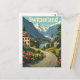 Immerse yourself in the serenity of Switzerland with our captivating travel ad design, showcasing a picturesque lakeside nestled against a backdrop of majestic mountains. This postcard invites you to discover the perfect harmony between crystal-clear waters and towering alpine peaks, offering a tranquil escape in the heart of Swiss beauty. Experience the allure of lakeside bliss amidst the breathtaking landscapes of Switzerland.