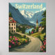 Immerse yourself in the serenity of Switzerland with our captivating travel ad design, showcasing a picturesque lakeside nestled against a backdrop of majestic mountains. This postcard invites you to discover the perfect harmony between crystal-clear waters and towering alpine peaks, offering a tranquil escape in the heart of Swiss beauty. Experience the allure of lakeside bliss amidst the breathtaking landscapes of Switzerland.