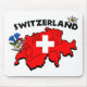the Red and white flag of Switzerland crosses over the map of the country framed with edelweiss and enzian.