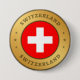 The Switzerland flag is inset into a rounded faux gold ring. The word "Switzerland" features at the top and bottom of the design, and are of a pressed effect. The pair of three decorative stars across from each other, are also designed with a pressed effect.