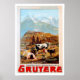 It is a serene picture of Switzerland and cows out in pasture. Mountains are in the background. It is vintage from a French railway now gone.