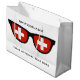 These two personalised and stylish glossy gift bags were simply ideal to carry wedding gifts wrapped in the matching gift wrapping paper. The customised text printed on the gift bags was precisely as ordered and while the photo does not quite do the gift bags justice, rest assured they look fabulous. The gift bags were securely packaged for safe transit arriving undamaged and it was a speedy turnaround from ordering to delivery. Thank you Zazzle for another 5-star transaction in every way!