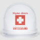 Personalised snow globe shows the Swiss Flag with the word SWITZERLAND underneath in snow-capped letters. The flag of Switzerland is a red square with a white cross in the centre. Above the flag is a place for your name in red letters, so you can personalise your look or create a gift. Thoughtful holiday gift or stocking stuffer for those of Swiss ancestry.