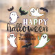 Ghost and bat themed Halloween window cling with your family name in a spooky font, and swooping ghosts and bats.