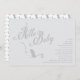 This beautiful baby shower design features a scripted "hello baby" greeting and a minimal stork illustration with offset italic serif text.