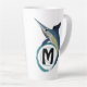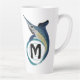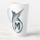 A powerful swordfish jumping out of a blue wave. The wave has a light blue inner for a monogram. The “M” is short for monogram and can be customised to suit your needs.