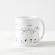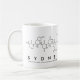 Sydnee spelled out in amino acids as S Y D N E E (Serine Tyrosine Aspartic acid Asparagine Glutamic acid Glutamic acid) on a mug for the scientist in you.