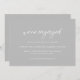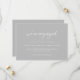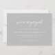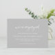 Modern wedding save the date card featuring a contemporary typographic design with "we're engaged" in elegant script typography. Below are your event details in a simple and minimal layout. The colour theme is slate grey and may be changed the design editing tool.