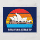 Personalised Australia vacation keepsake postcard featuring the Sydney opera house in front of an Australian sunset above cool blue water. Cute custom family trip souvenir.
