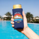 Personalised Australia vacation keepsake seltzer can cooler featuring the Sydney opera house in front of an Australian sunset above cool blue water. Cute custom family trip souvenir.