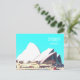 Travel print featuring original photography of famous Sydney Opera House building architecture icon in Sydney Australia with a aqua blue shade of sky. Australian travel print. Funky modern colours.