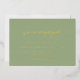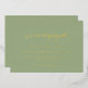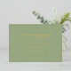Modern wedding save the date card featuring a contemporary typographic design with "we're engaged" in elegant script typography. Below are your event details in a simple and minimal layout. All text on the front is in real foil over a sage green background.