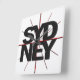 This Sydney wall clock is designed to be part of a set of global timezones that an office may have to display world times. It can also be used as a kitchen or decor clock for the modern home. The design is mildly 3 dimensional to add a little depth to the lettering. You have the option of either square or round clock designs that you can select by viewing the product editor.