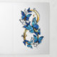 Symbol infinity of gold, decorated with realistic blue butterflies morpho on a white background. Design with butterflies. Morpho. Design with blue butterflies morpho.