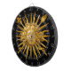 Symbol of Louis XIV the Sun King (Roi Soleil) on the golden gate of Chateau de Versailles with black background