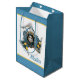 Celebrate the heritage of Sicily with this striking Trinacria gift bag, featuring the island’s iconic three-legged symbol representing the “three points” of Sicily. Inspired by traditional Sicilian ceramics, the design is beautifully rendered in cool shades of grey, white, and blue with bright yellow accents. A blue border with a fine yellow pinstripe frames the artwork for a polished look. The word “Sicilia” appears on the bag, but you can also customize it to say “Sicily” for an English variation. Perfect for Sicilian-themed parties, cultural events, or anyone who loves Mediterranean décor and heritage-inspired gifts.