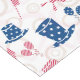 Cute American Independence Day celebration symbols in red white and blue over white background. Balloons, hats, fireworks, etc.