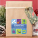 The symbols of Rosh Hashanah add some fun to this Jewish New Year sticker. Two rows with graphic images of an apple, a shofar, Star of David, dove, honey dipper and a kiddush cup are rendered as simple, colourful icons to offset the greeting "L'Shanah Tovah" and a customised message between the rows. The default size is 3" but it can be easily changed to a smaller 1.5" size. Available with matching products.