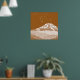 An illustration of Syme hut on Fathoms Peak, with Mt Taranaki in the background. This design is drawn in a brown monochrome and has the Matariki stars above it in the sky. A design for anyone who loves hiking and tramping in New Zealand.