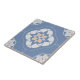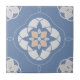 Symmetric Orange Flower Tiled Pattern on Blue Ceramic Tile
