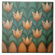 Symmetric Orange Tulips Wall Decor Art Deco Ceramic Tile