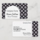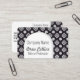 This personalised business card features a white flower tiled motif pattern, with a black background, over an arch. Your name, business name, profession or title, phone, social media site, icons, email, website and business address can be easily entered with the template. Change the text and fonts to a style and colour of your choice.