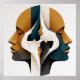 Explore the complexity of identity with this profound Negative Space masterpiece. This artwork features two mirrored profiles facing outward, bridged by a central pillar of fluid, interlocking shapes that suggest a hidden third perspective.
