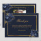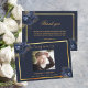 A simple and elegant sympathy thank you card with photo. A darl blue background, a faux gold frame and blue florals. Personalise and add your thank you note.