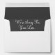 A 5 X 7 Invitation / Greeting Card Envelope. A Custom White envelope with a Dark Grey Liner, written with "We're sorry for your loss" on the liner.