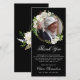 Elegant sympathy & memorial thank you card. Easy to edit text. Hand painted watercolor white floral bouquet with faux gold rings on black background. Add PHOTO / picture. Give them during or send them after the funeral. Makes great keepsake. Add your thank you message. See others like 'in loving memory'