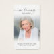 Keep the memory of your loved one close with this personalized prayer card featuring a beloved photo, the sentiment IN LOVING MEMORY, name and dates and an editable heartfelt remembrance message your can change to a meaningful poem, prayer, bible verse or quote. With its simple yet elegant design and modern script typography on your choice of background color (shown in white), it makes a cherished keepsake to share at a funeral, memorial service, visitation, wake or Celebration of Life and offers comfort and a lasting tribute for family and friends. Its small and portable size of 3.5x2" (wallet-sized) makes it convenient for loved ones to carry it with them as a reminder of your loved one’s life and spirit.
