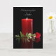 A sympathy condolences card for the loss of a beloved father or dad. A candle, lit in remembrance and a red rose for love.