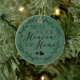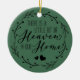 Sympathy Memorial in Loving Memory Photo Ceramic Ornament - The front of this unique ornament features rustic, script typography that reads "There is a little bit of heaven in our home" surrounded by hand drawn greenery & berry wreath. The back of the ornament features your photo "Forever in our Hearts" with year born and year passed. So special. Shown in green, however you can change the colour to whatever you like in the design tool.