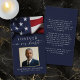 Keep the memory of a loved one close with this personalized patriotic prayer card featuring a cherished photo of them framed in faux metallic gold foil, the sentiment FOREVER IN OUR HEARTS, name and dates with an image of an American flag on the front and an editable heartfelt remembrance message on the back in navy blue. With its simple yet elegant classic design and modern script typography, it makes a meaningful keepsake to share at a funeral, memorial service or Celebration of Life and offers comfort and a lasting tribute for family and friends. Its small and portable size of 3.5x2" (wallet-sized) makes it convenient for loved ones to carry it with them as a reminder of your loved one’s life and spirit. Personalization makes each card unique.
