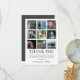 A lovely keepsake funeral / memorial service thank you card to send to family and friends who have shown you love, kindenss and support during your time of grief. Featuring 9 memorable square photographs of your loved ones life, and a simple thank you message template that can easily be personalised in teal text, that can be changed to any colour.