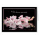 Pink gladiola reflected in water on black with a pink border for general sympathy.