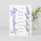 Encourage someone grieving over the loss of a loved one with this unique design featuring large vertical headline, "Sympathy", followed by this message: "May God comfort your grieving heart, ease your pain and sorrow, and surround you with peace." Background lavender, butterfly and flower illustration on watercolor texture background. Inside can be customised with your own personal message. Back has this message, "My thoughts and prayers are with you. Placeholder below for your name. Bottom of card includes a fully-editable bible verse; "Blessed are those who mourn, for they shall be comforted. Matthew 5:4 ."