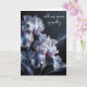 Delicate blue and purple iris flowers with intricate petals appear against a dark background with wispy lines