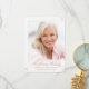 Thank your family and friends for attending your loved one's funeral and/or their kind sympathy notes with this simple but elegant personalised photo thank you card. This minimalist design template features a photo on the front with a translucent overlay for the words "In Loving Memory" in faux rose gold script with name and dates to customise. The back of the card has your custom thank you message, signature, and quote accented by a delicate floral divider. Designed by artist ©Susan Coffey.