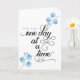 Encourage someone grieving over the loss of a loved one to stay in the moment and give themselves times to heal with this calligraphy typography design featuring the message, "Remember to take this one day a a time." Design is accented by beautiful blue flowers in upper right and lower left corner of card.