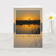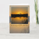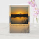 Sympathy. Beautiful orange sunrise behind oak tree silhouette, reflected on lake with black reeds in the foreground. Text says: I'm so very sorry for your loss. Inside card is blank.