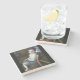 The coasters are gorgeous, a quality feel and heavy weight. They look like a precious archeological find. A rustic stone juxtaposed with a modern floral black and white print. I like the way the print goes slightly imperfect on the cut stone edges giving them a kind-of natural beauty.
