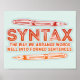 A funny design which is part of my English language grammar collection. This focuses on linguistics. The design explains what syntax is in regard to structure, and provides a sentence which has poor structure. A funny design for anyone learning English