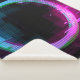 Synthwave Vaporwave Retrowave Glitch Circle with blue and pink glows with smoke and particles on laser grid space background.