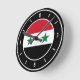 Syria Flag Elegant Round Clock with the Syria flag positioned in the middle and lovely white clock numbers on the clock edge. Delightful black background with the white oval elements finalize the design putting emphasis on the elegance. Beautiful combination of black and white with the skillful integration of the national flag colors make this clock the perfect gift and the great show piece on the wall. © CountriesOfTheWorld