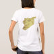 The front of this t-shirt boldly displays the Syrian flag with its distinctive two green stars on a white band with a red band above and black band below. This is matched at the back by an attractive map of Syria.